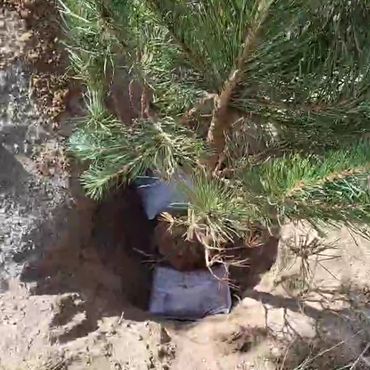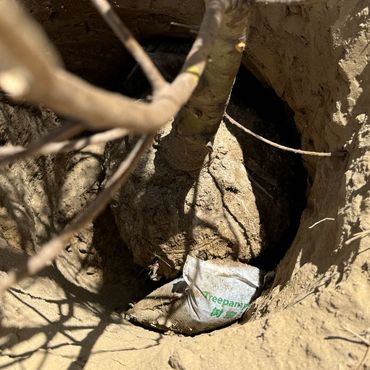 Hydrated TreePampers® should be positioned on the side at the base of the tree or shrub roots. Typically, two TreePampers® are used per tree, but the exact quantity can be adjusted according to specific site conditions.
